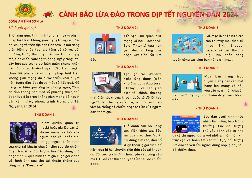 Thời gian qua, tình hình tội phạm lừa đảo trên không gian mạng trong cả nước nói chung và trên địa bàn tỉnh Sơn La nói riêng diễn biến phức tạp, gia tăng về số vụ, với phương thức, thủ đoạn ngày càng tinh vi, quy mô, tính chất mức độ thiệt hại ngày càng lớn, gây bức xúc trong dư luận quần chúng nhân dân. Công tác tuyên truyền, đấu tranh ngăn chặn tội phạm lừa đảo trên không gian mạng đã được triển khai quyết liệt, bước đầu đạt được một số kết quả. Dự báo thời gian tới, đặc biệt là trước trong và sau Tết Nguyên đán Giáp Thìn 2024, các đối tượng lừa trên không gian mạng sẽ tăng cường hoạt động.